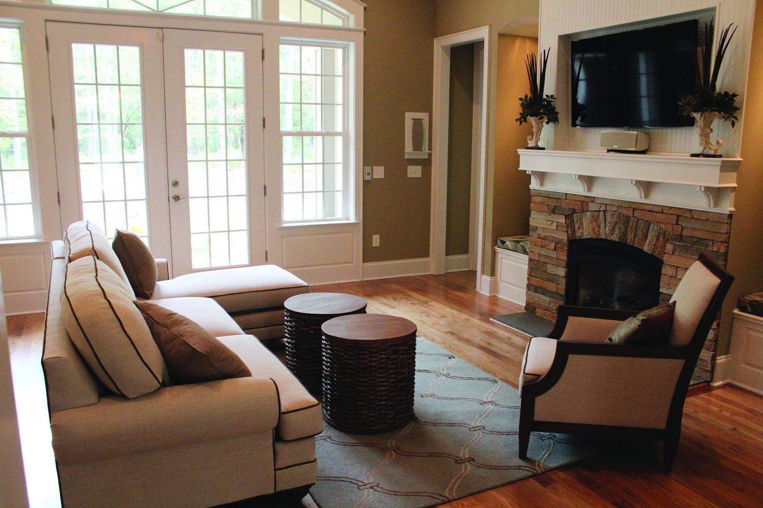 The Marley’s cabinetry was fulfilled by Markraft, and during the Parade of Homes, it was simply yet gorgeously styled by Mango Furniture Unlimited. Boutique items such as wall-length, farm-house style mirrors and immaculate canine sculptures were selectively placed throughout the home.
